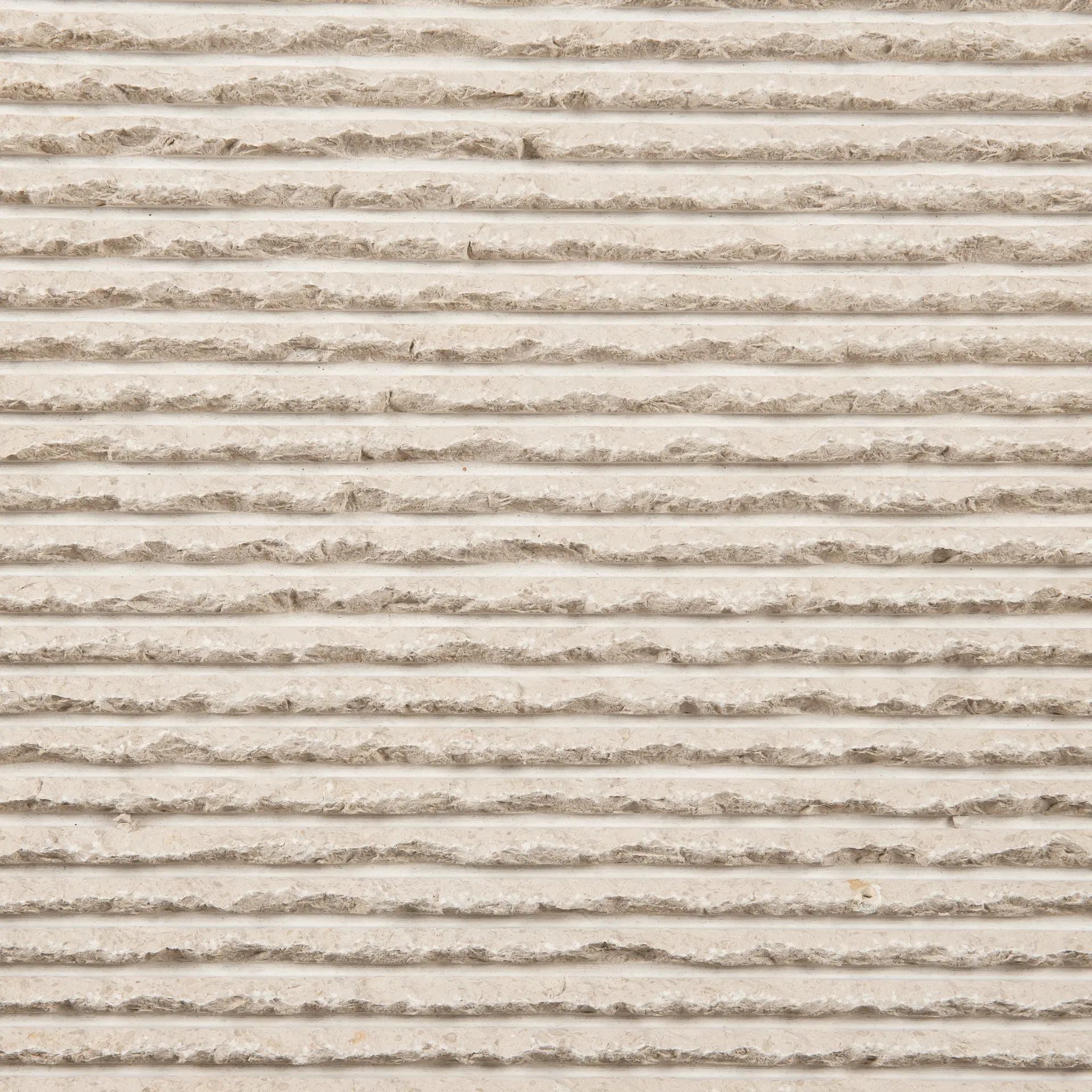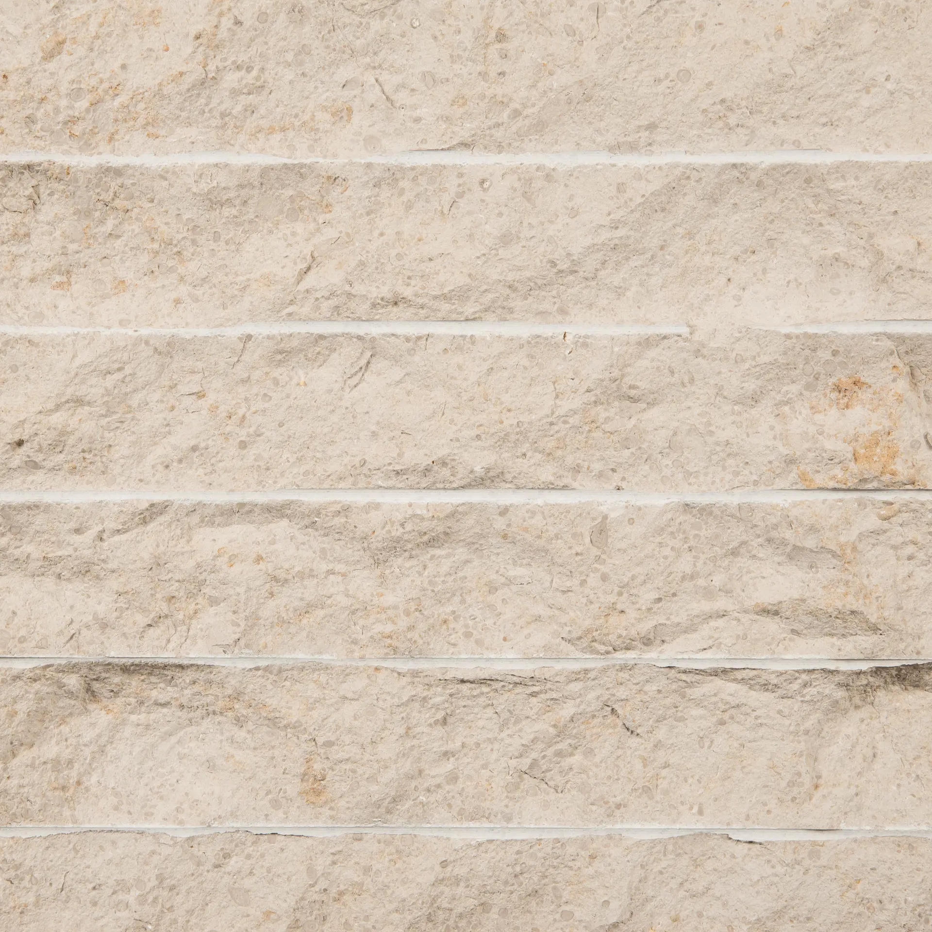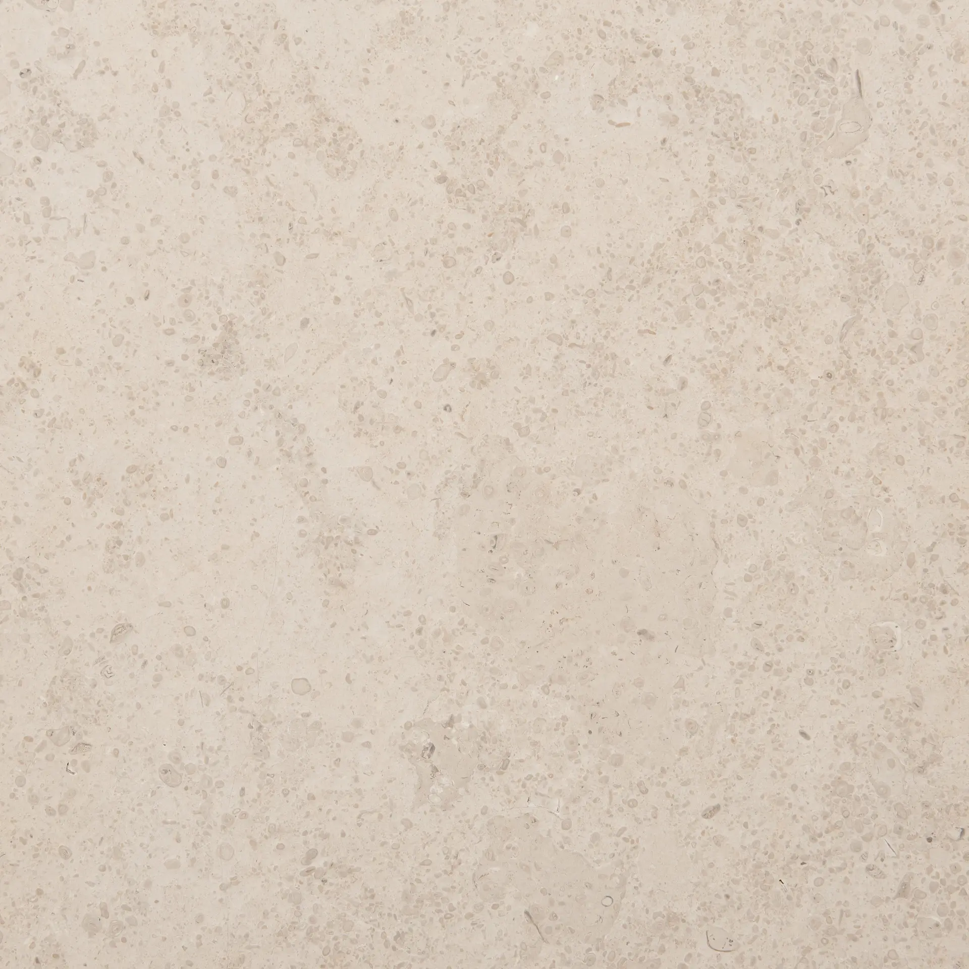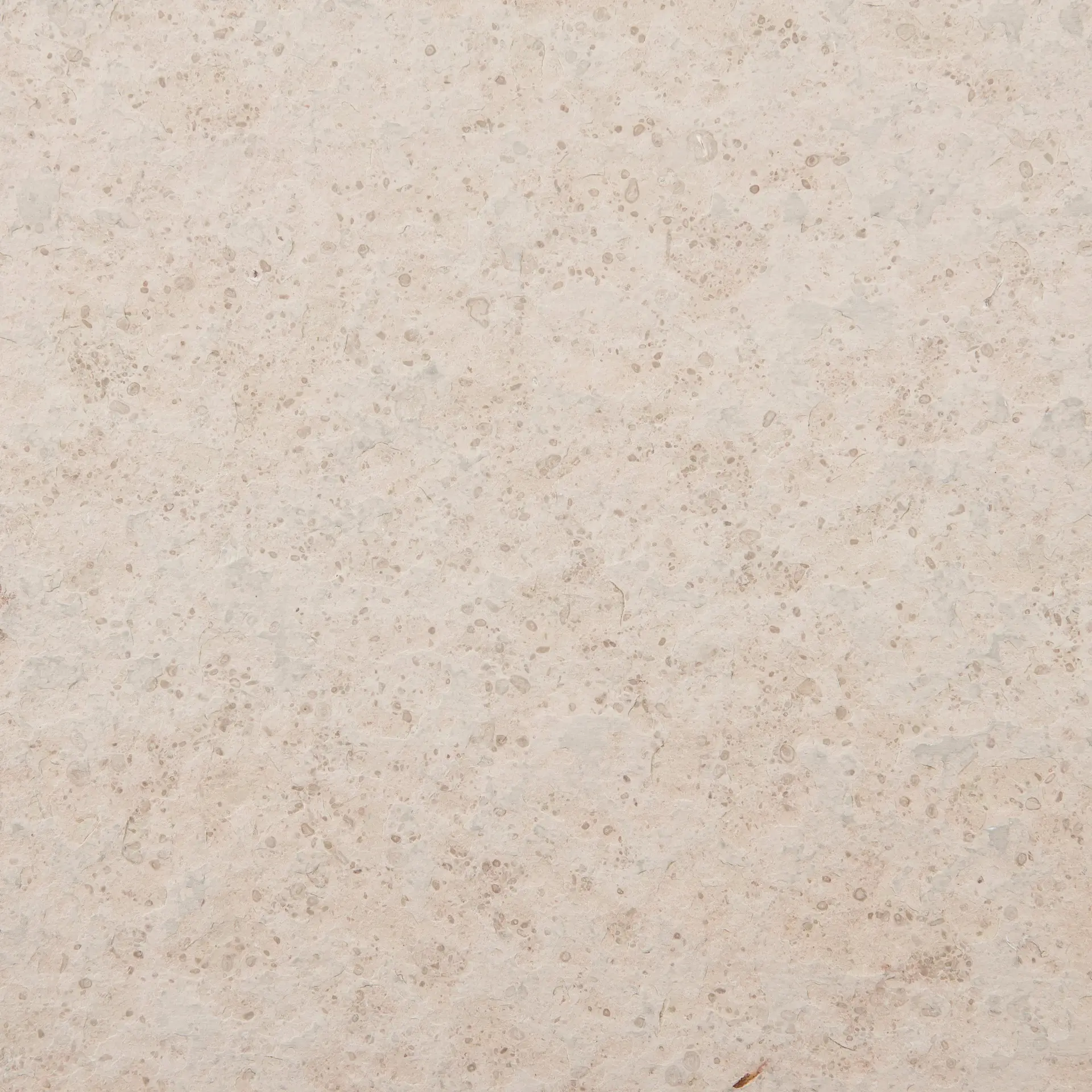 Calcário cinzento-azulado com pequenas manchas dispersas de tonalidade mais clara e elementos grosseiros, calciclástico e pouco bioclástico
