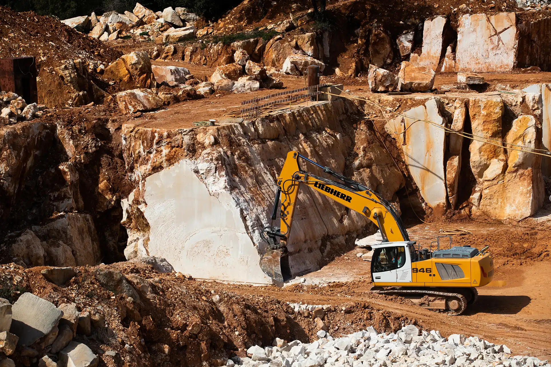 ​Desta unidade são extraídos aproximadamente 200m3 por mês de blocos selecionados de pedra BRANCO VALONGO.