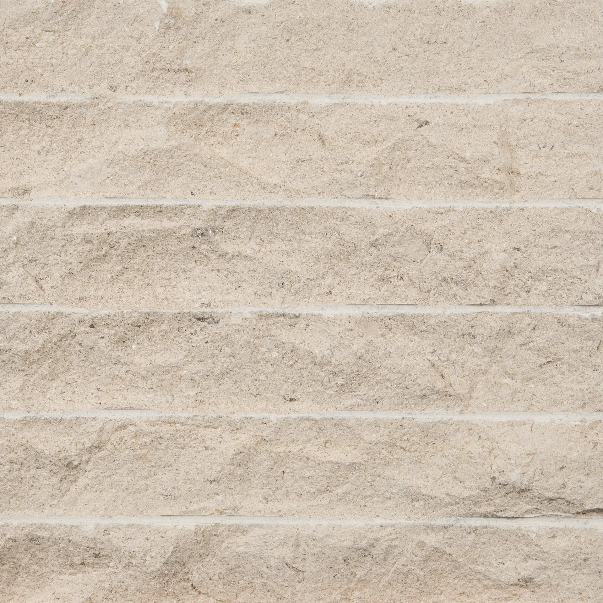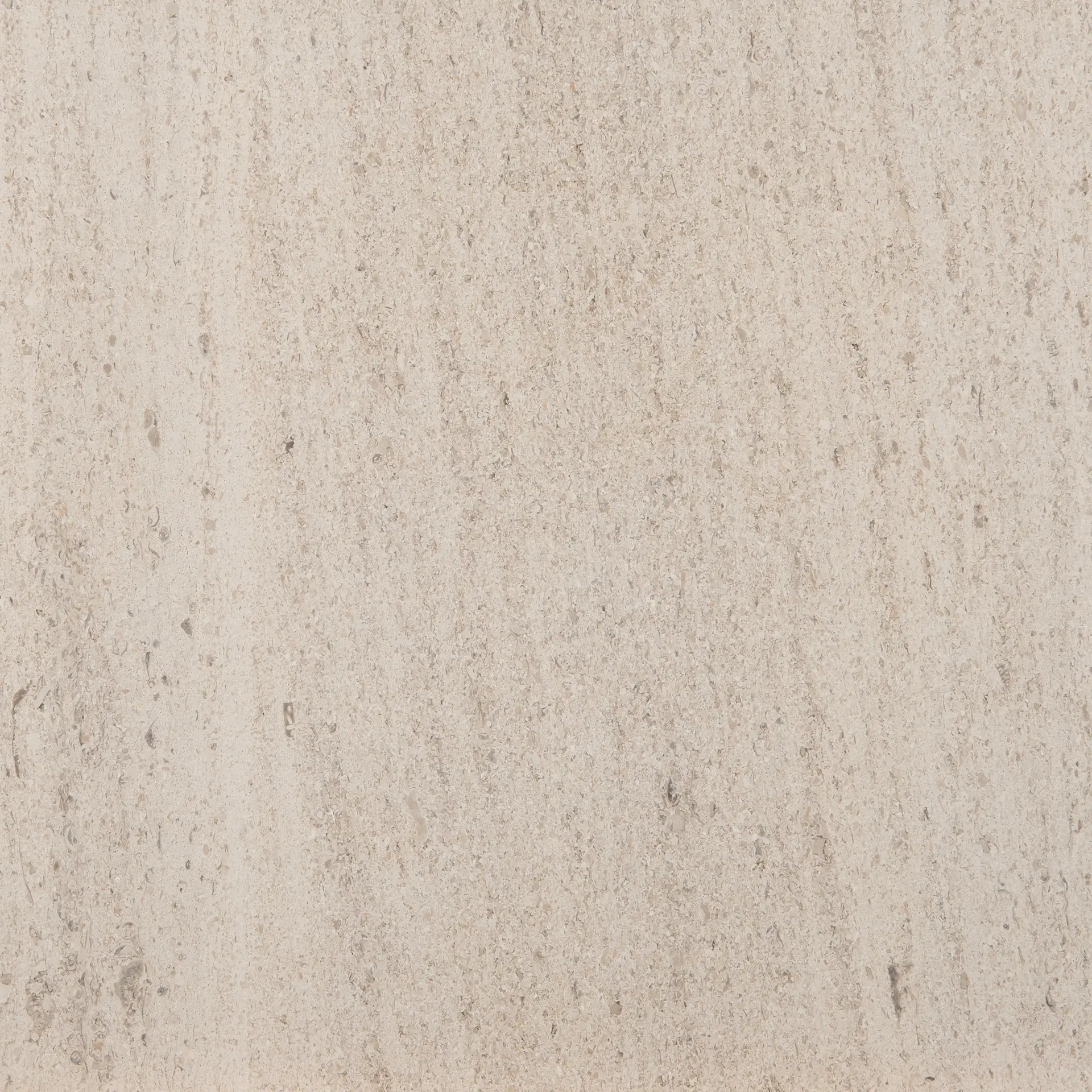 Calcário cinzento-azulado com pequenas manchas dispersas de tonalidade mais clara e elementos grosseiros, calciclástico e pouco bioclástico